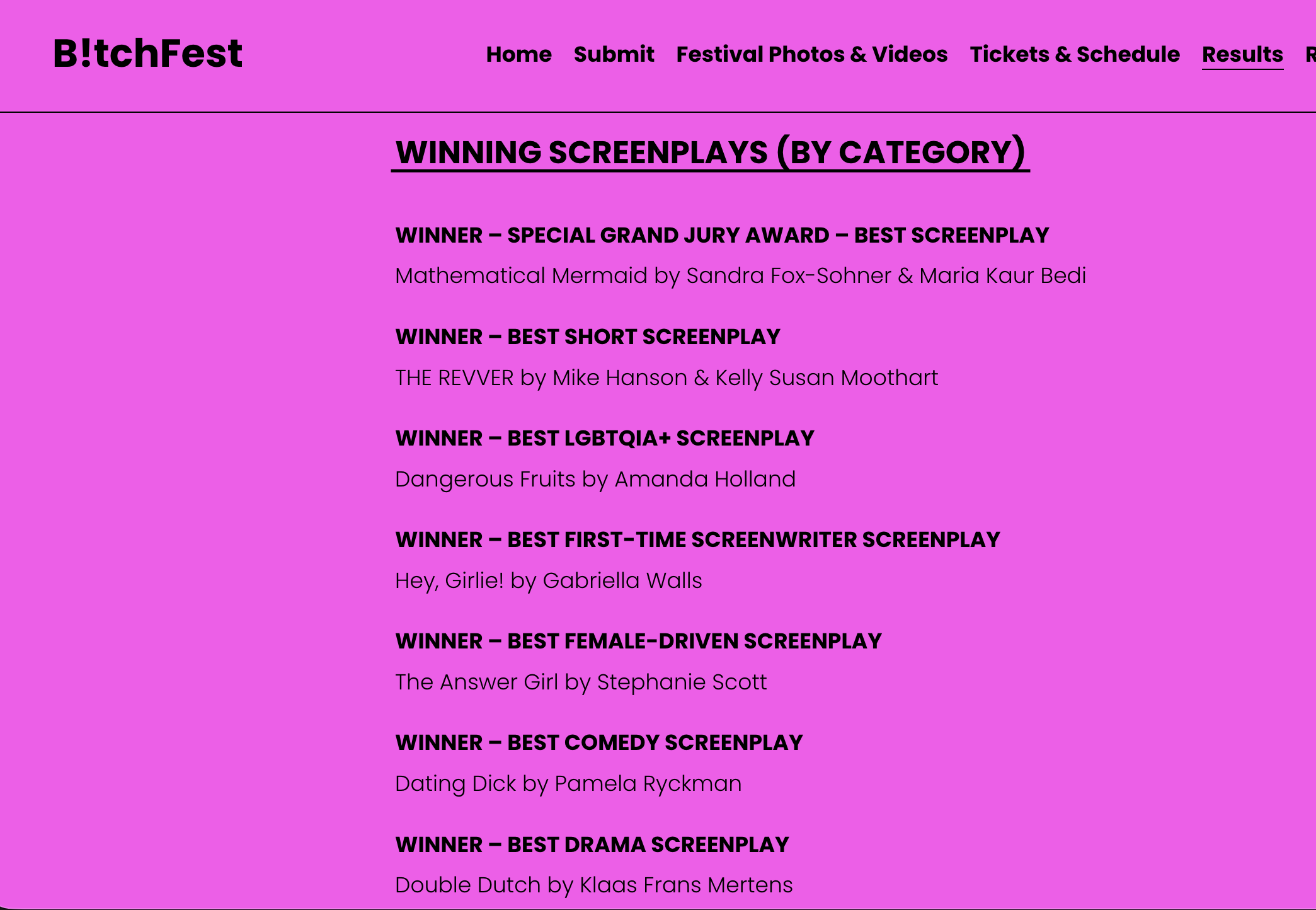MY SCREENPLAY WON AN AWARD! “Dangerous Fruits” won Best LGBTQIA+ Screenplay at BitchFest Amanda HollandFebruary 3, 2026 Facebook0 Twitter Pinterest0 0 Likes
